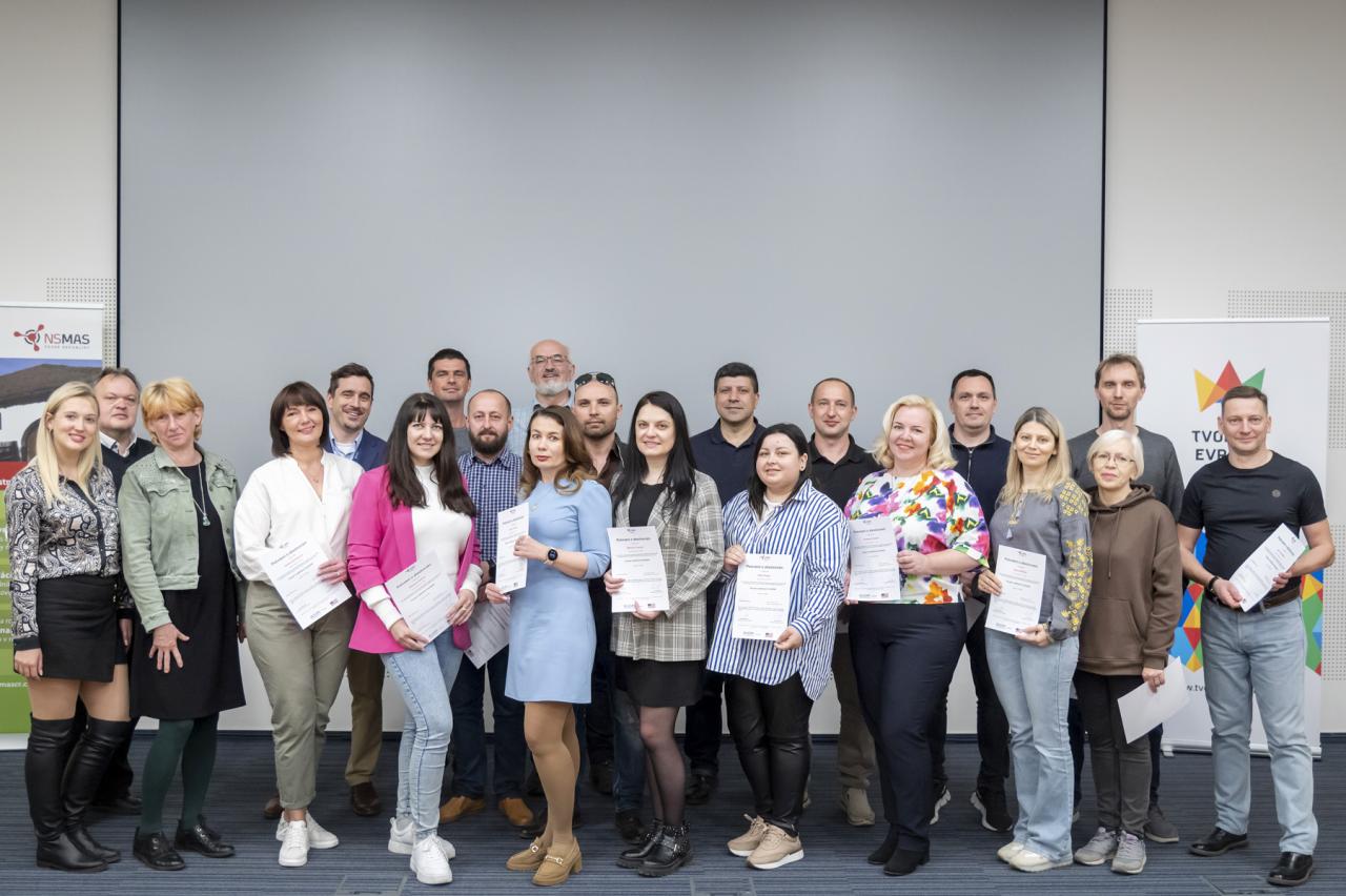 V pátek 26. dubna slavnostní ceremoniál završil projekt, díky kterému dostalo 24 uprchlíků a uprchlic z Ukrajiny možnost zařadit se mezi ostatní energetické koordinátory MAS. Absolventům a absolventkám kurzu pogratulovala naše předsedkyně Jana Kuthanová společně s místopředsedou Jiřím Kristem.